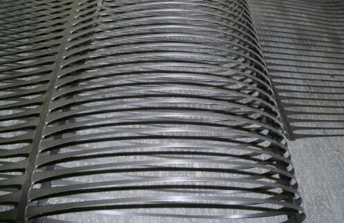 塑料土工格柵經(jīng)過拉伸形成的具有方形或矩形的聚合物網(wǎng)材,按其制造時(shí)拉伸方向的不同可為單向拉伸和雙向拉伸兩種。它是在經(jīng)擠壓制出的聚合物板材(原料多為聚丙烯或高密度聚乙烯)上沖孔,然后在加熱條件下施行定向拉伸。單向拉伸格柵只沿板材長(zhǎng)度方向拉伸制成;雙向拉伸格柵則是繼續(xù)將單向拉伸的格柵再在與其長(zhǎng)度垂直的方向拉伸制成。